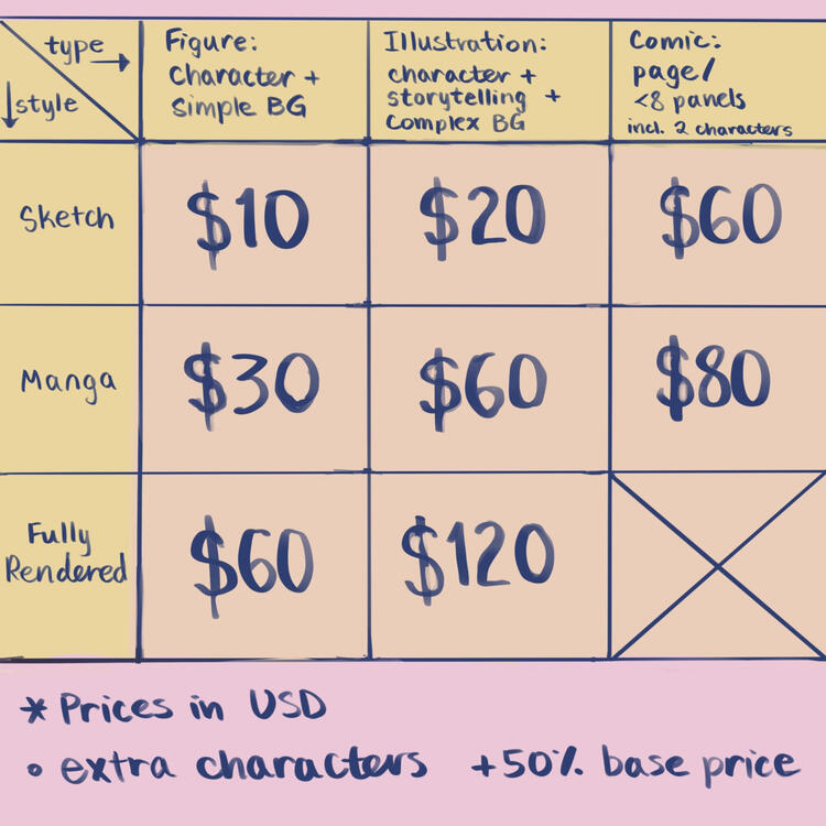 When I have time, I will open up a commission batch with ~3 slots. Look at my Instagram for updates.